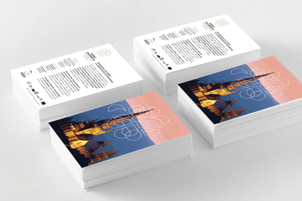 Le projet se concentre sur la création d’un logotype inspiré du décor sculpté et sur une signalétique cohérente, affirmant une identité visuelle contemporaine.