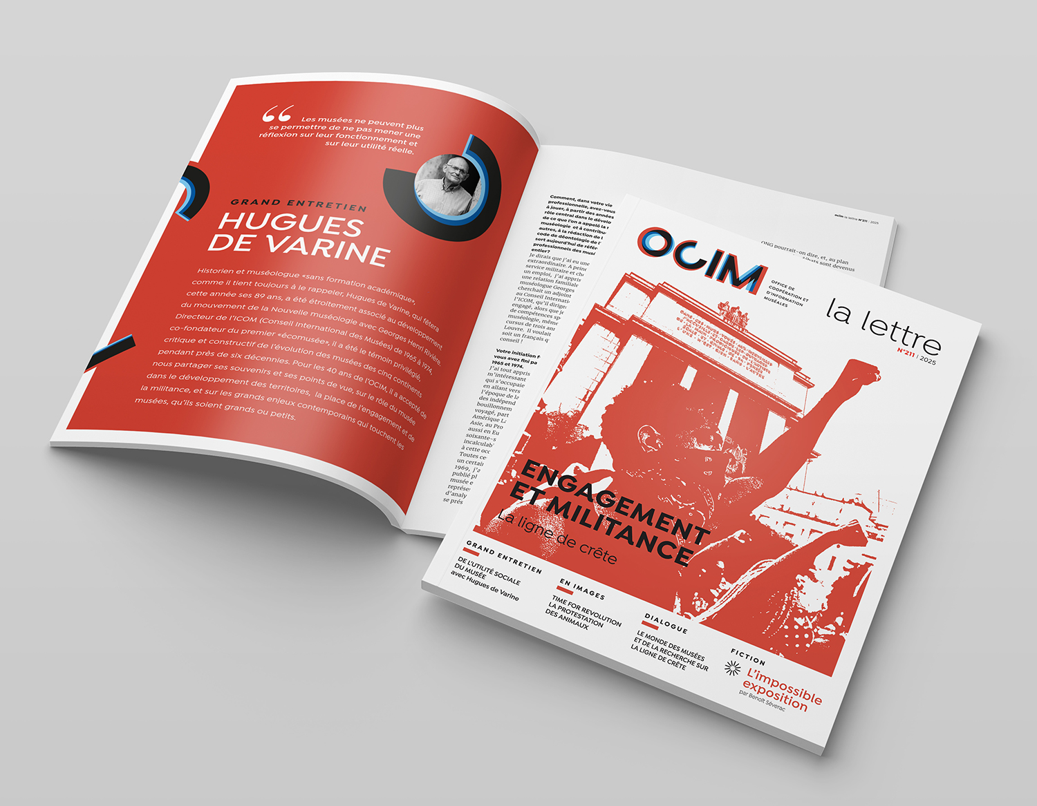 En 2025, la Lettre de l’Ocim fait l’objet d’une refonte complète de sa maquette, pensée en cohérence avec la nouvelle identité graphique de l’institution et une restructuration éditoriale approfondie. Ce travail met l’accent sur une hiérarchisation visuelle claire, une modernisation des codes graphiques et une meilleure lisibilité des contenus dédiés aux professionnels des musées et du patrimoine.