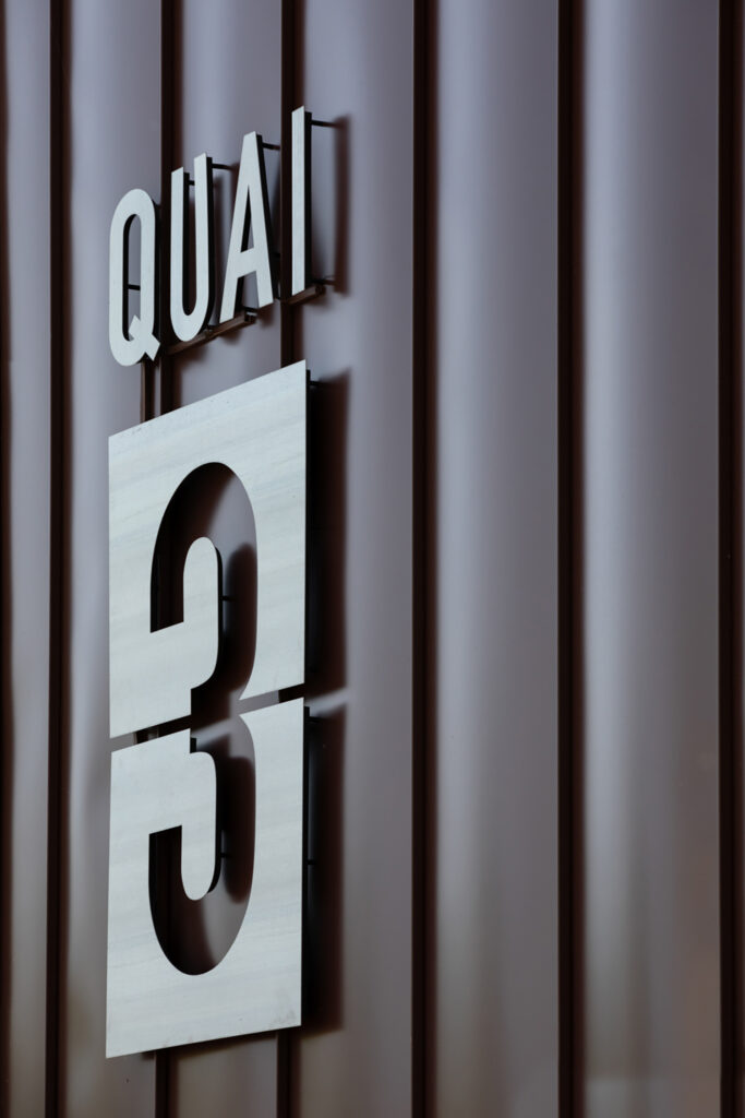 Le projet graphique du logotype à la signalétique — se prolonge dans un décor géométrique en vitrophanie, diffusant une identité visuelle lumineuse et dynamique.